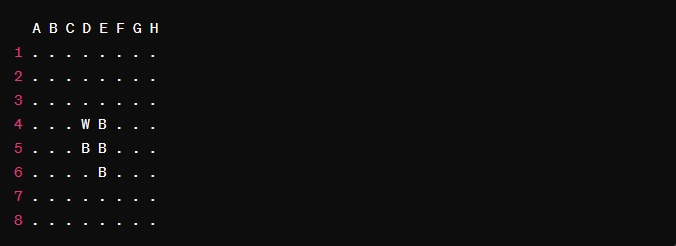 - D4とE5に白の石を置きます。D5とE4に黒の石を置きます。